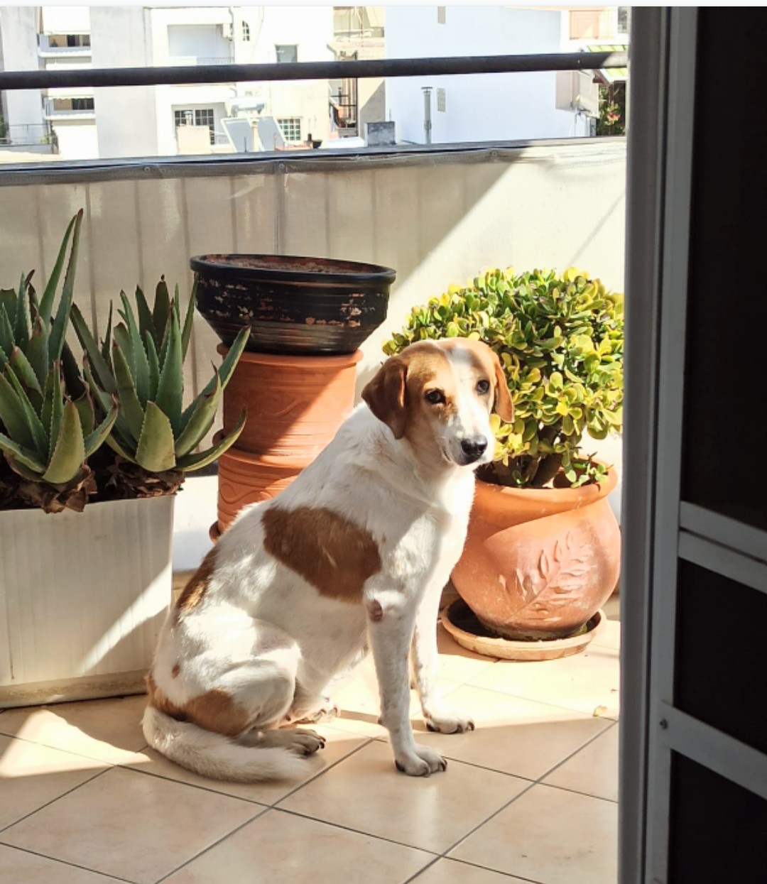 Abbie wurde in den Vororten von Patras gefunden – völlig entkräftet, voller Räude und blutender Wunden. Sie ließ sie sich ohne Widerstand ins Auto heben, wahrscheinlich wusste sich instinktiv, dass jetzt alles gut wird.