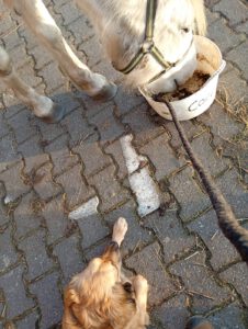 ruhig und entspannt, auch z. B. beim gemeinsamen Arbeiten mit Pferd und Hund