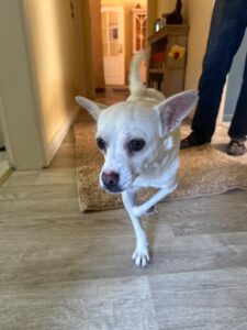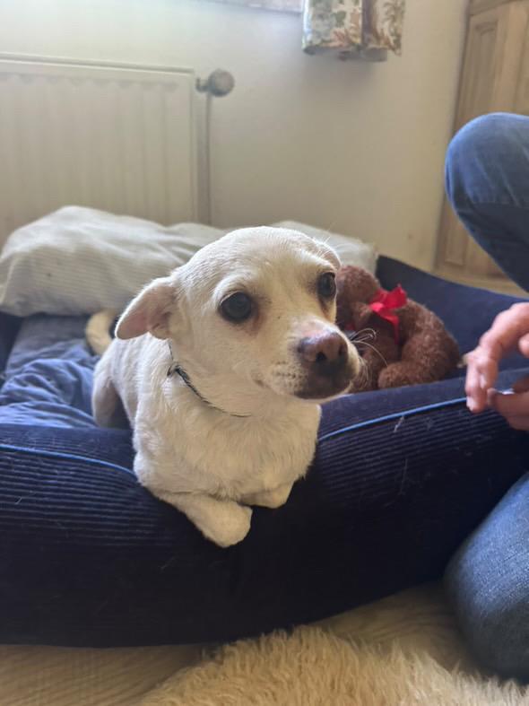 Jasmin ist sehr sozial und eignet sich hervorragend als Zweithund. Sie ist eine fröhliche, lernwillige kleine Hündin, die ihr Leben trotz Handicap genießen möchte.