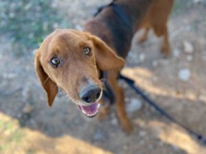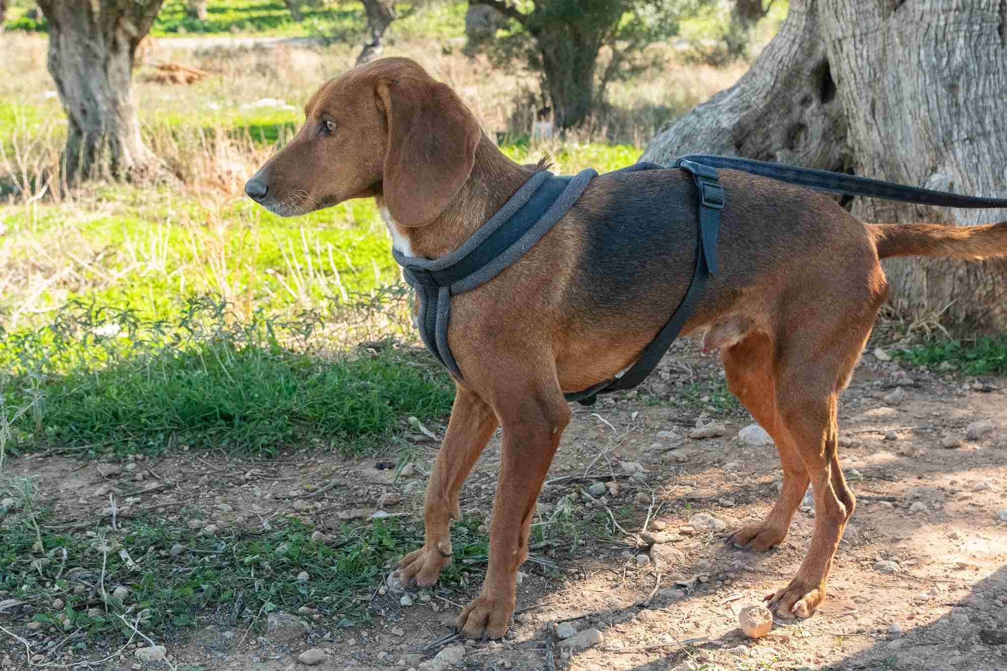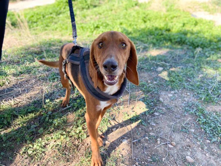Louci wurde von einer Tierschützerin während ihres Urlaubes in den Bergen gefunden. Offensichtlich wurde er dort ausgesetzt. Louci war nur noch Haut und Knochen als er gefunden wurde und er wurde positiv auf Leishmaniose getestet.