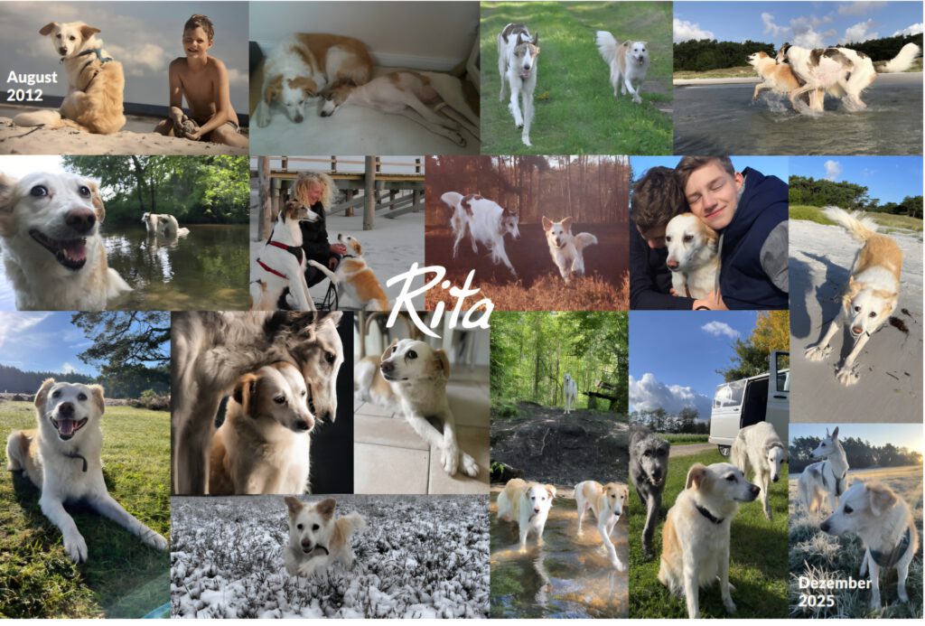 In 2012 haben wir Rita bei Ihnen adoptiert. Ihre Beschreibung lautete „Hündin mit einem Welpen ins Tierheim gekommen, die anderen waren auf der Straße überfahren worden, ca. 1 Jahr alt, das Bellen der anderen Hunde macht ihr Angst“.